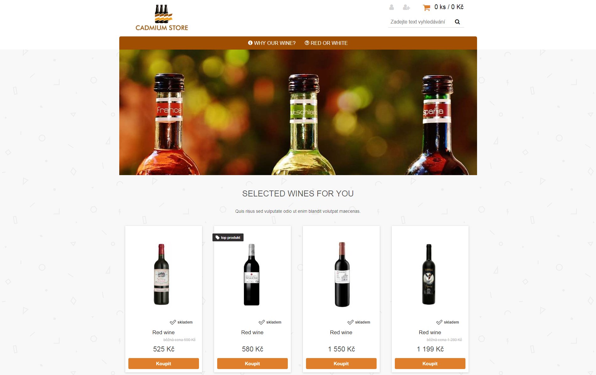 Šablona CADMIUM je laděná do hnědo oranžových barev. Demonstruje především možnosti již stávajících funkcí systému. Například horní produktové menu využívá možnosti vložení i rozsáhlých textů umístitelných před a za vlastní výpis produktových boxů. Celá šablona je velmi vzdušná a jednoduchá s maximálním důrazem na prezentaci vlastních obrázků nabízených produktů.