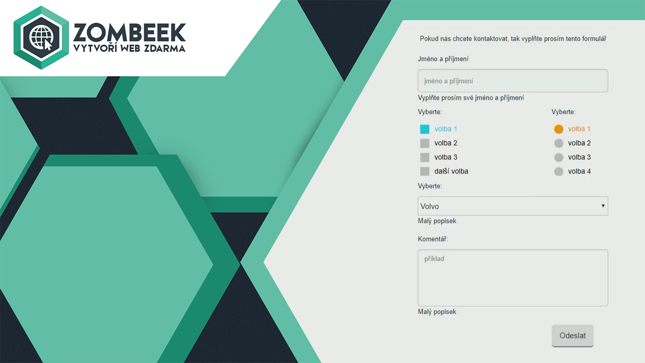 O tom, že Zombeek má plně funkční formuláře, jste se již možná přesvědčili. Určitě jste již i vyzkoušeli unikátní, velmi šikovné přetahování jednotlivých prvků formuláře na libovolné místo na stránce. Ocenili jste i plnou responzivitu a bohatou funkčnost formulářů. Chybělo jen jediné… aby byly formuláře také hezké na pohled. To jsme nyní, mimo jiné, napravili!